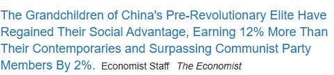The Economist tracked the data in 2022 and found what shouldn’t surprise you: the grandchildren of China’s pre-revolutionary elite are disproportionately wealthy today, even inside a Communist system.