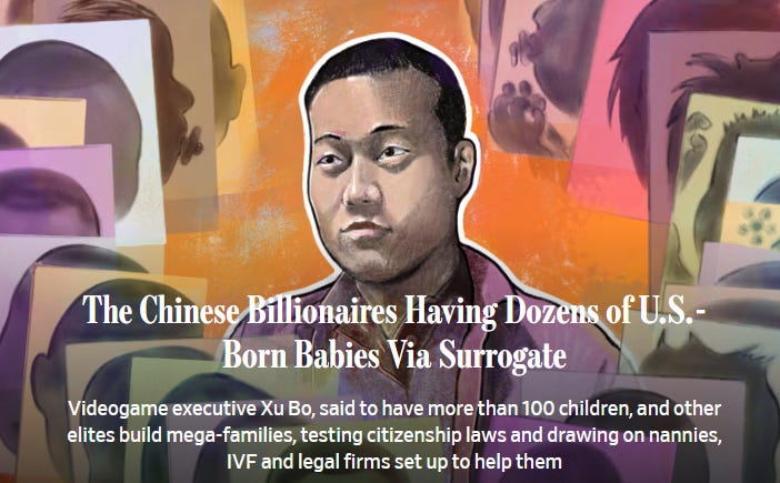 All US citizens, every one of them, born here through IVF and surrogacy, then sent to China for education. He is not alone.