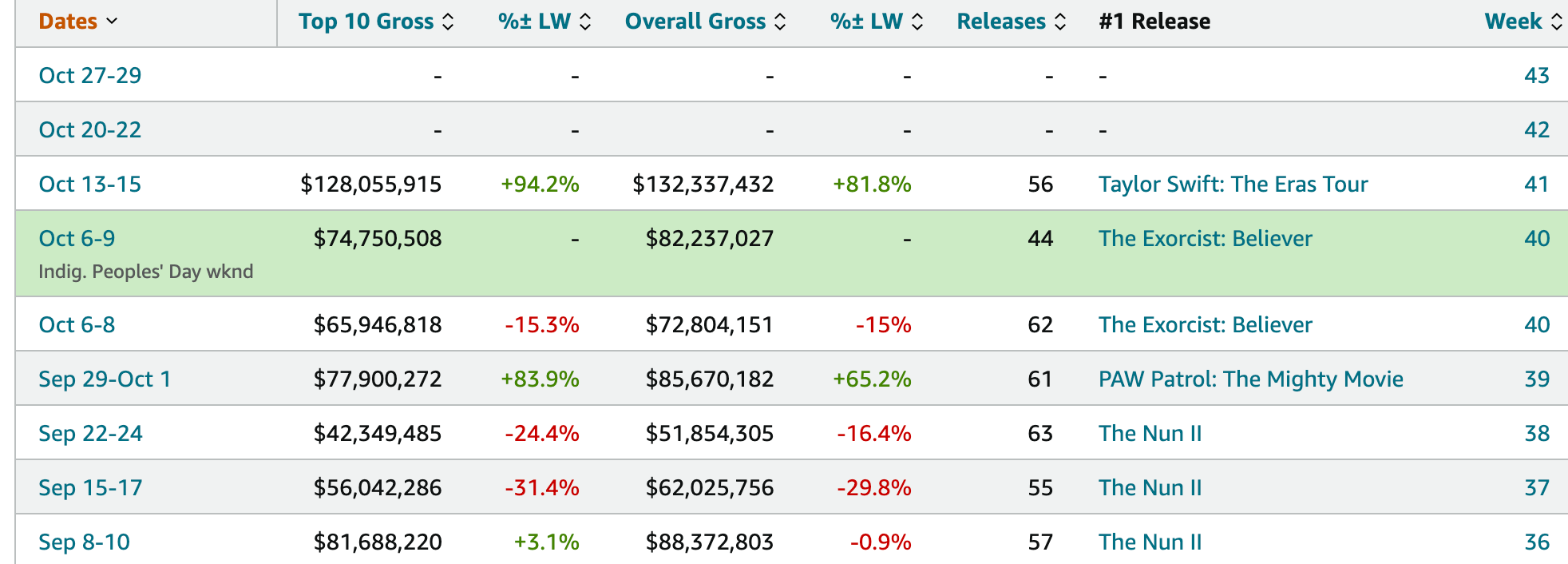From the box office data, no one neither really wants to be scared, but instead want a musical.