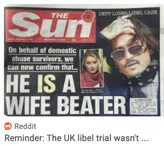 What’s interesting is that Depp had already sued Amber Heard in 2020 in the UK—and lost. Another period in time where common sense was hungover.