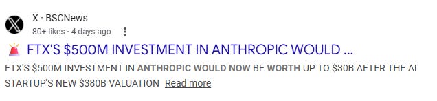 SBF, the jerkoff leader of FTX, has been tweeting that his company’s FTX position in Anthropic would be worth $35 billion now and would give ample time to pay off creditors.