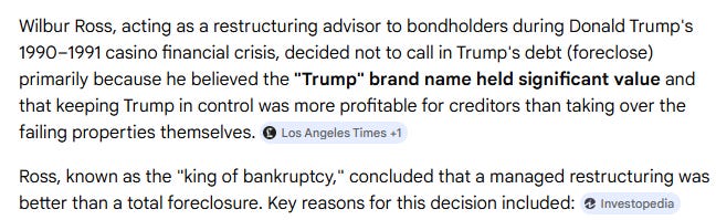 Trump was bankrupt, and the creditors saw potential in the man for great things in the futur,e and look at him now