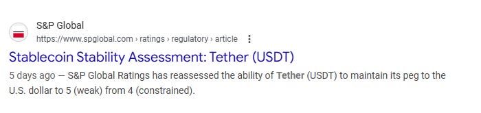 But someone has to rain down on the parade and the is S&P Global who rated Tether as the least trustworthy investment since it’s not fully audited.