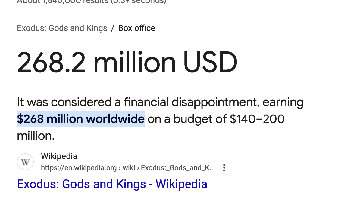 Ridley Scott is a great filmmaker. But I think he along with Hollywood believe the same same thing about themselves as did Pharoah. I humbly request that Mr. Scott show some humility and respect for the source material - and that is how you get people into the theatre which he didn’t do.