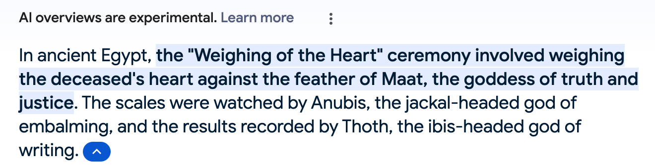 Did you know that the Egyptians believed that to gain eternal life the recently deceased Heart is weighed against a feather. The feather has to be lighter than the heart to gain eternal passage.