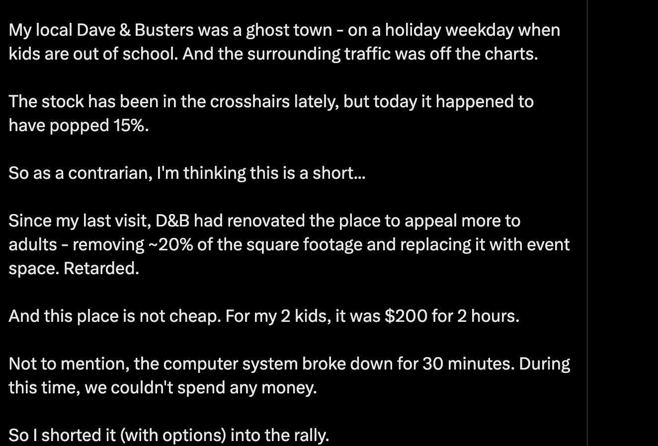 @John LeFevre on X shared why he is shorting a stock as a result of a bad experience